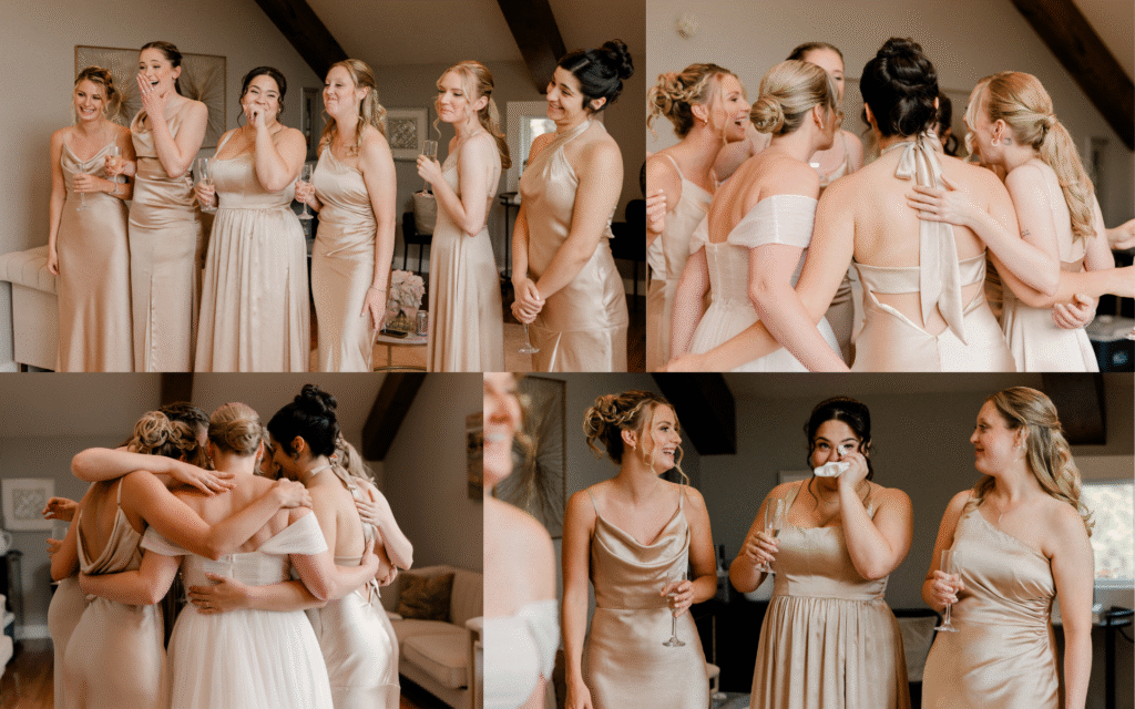 The Chestnut Ridge bridal suite is honestly one of the best spots for getting ready photos if you’re planning a Chestnut Ridge wedding in Asheville. Between the twinkle of champagne glasses and the soundtrack of laughter, it was one of those mornings where you could feel the anticipation buzzing in the air.